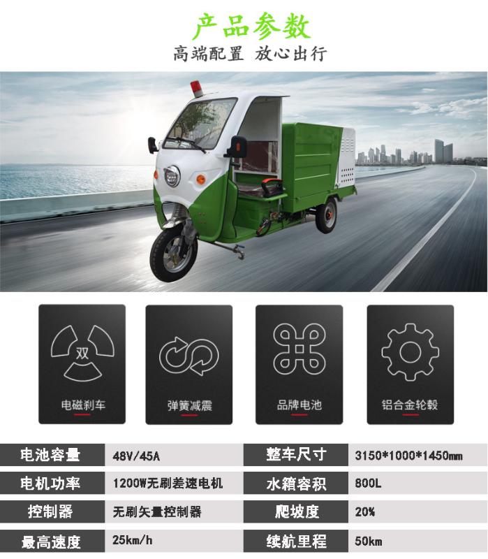 產(chǎn)品簡介:型號:清系800-2 QX800-2;1、續(xù)航里程:60km;最高時速:30km/h2、設(shè)備尺寸:3150*1000*1450;卷管器:15米自動卷管器;壓力:260公斤;水箱容量:630L;3、電池:48V/45AH;電機(jī):1200W